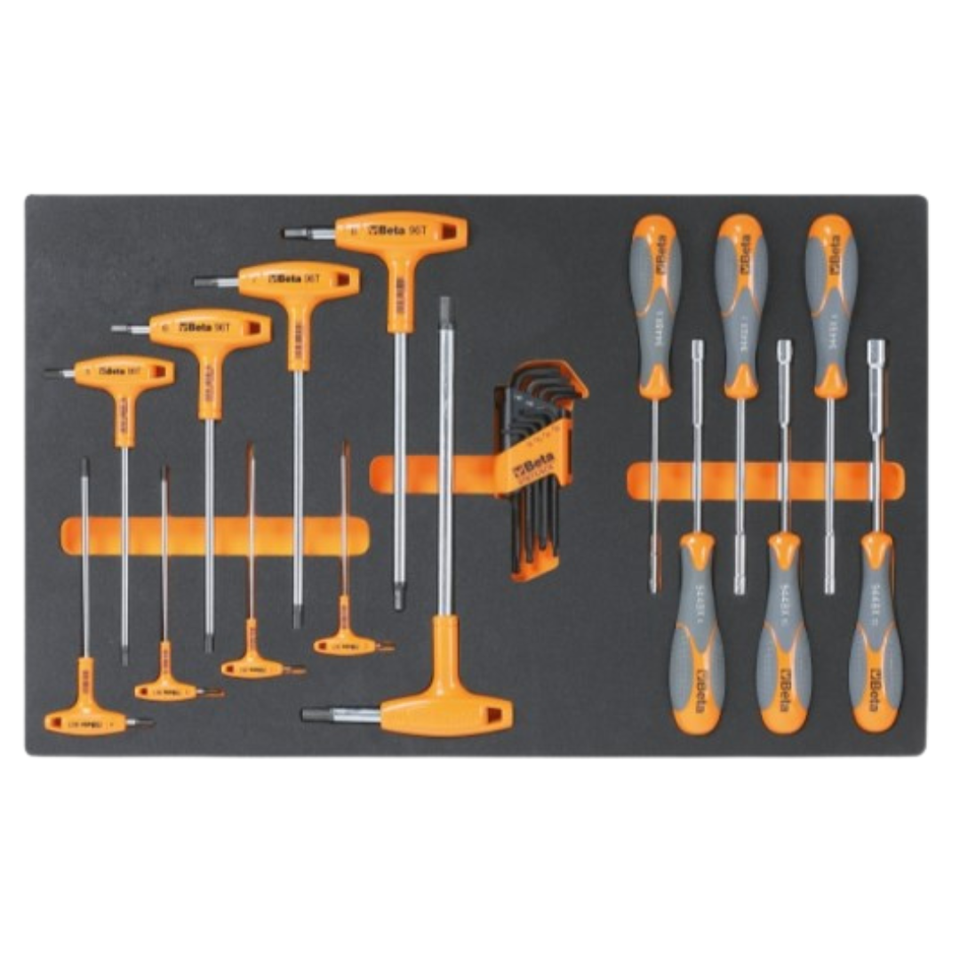 JOGO 23 CHAVES PARAFUSO EM T, UMBRAKO E CHAVES CAIXA EM PUNHO BETA M60