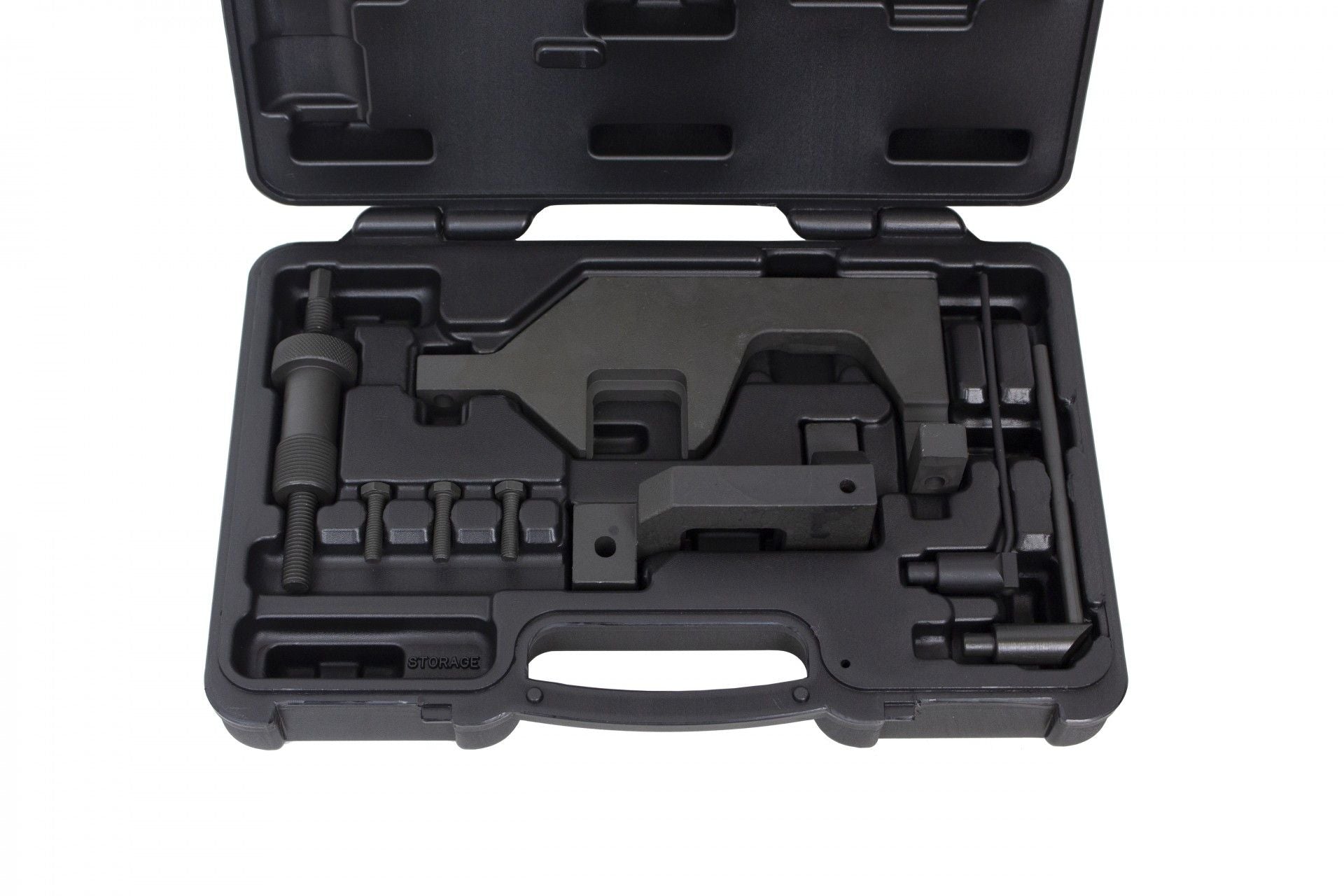 Descrição: Ferramenta para desmontar, montar e fixar a árvore de cames (entrada e saída) na posição TDC