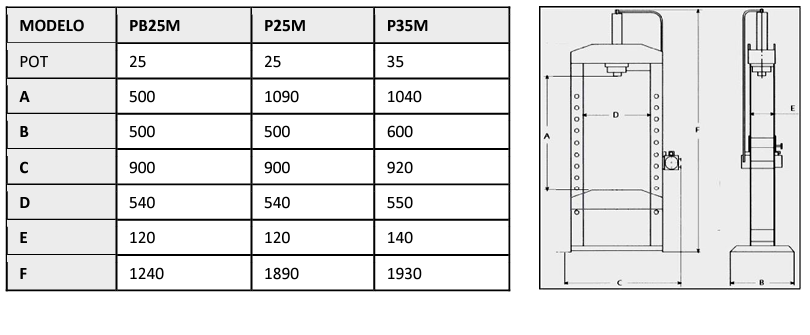 Prensa bancada manual hidráulico móvel 25TON RAVIOL P25M
