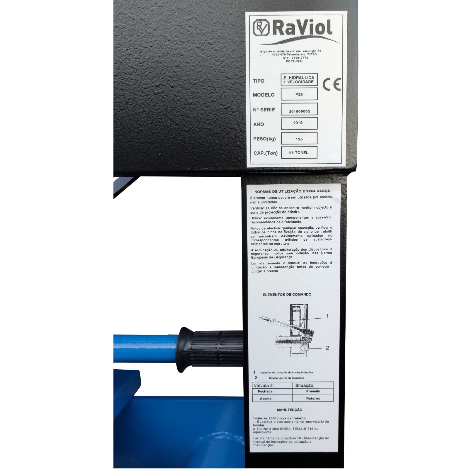 Prensa hidráulica bomba manual 1 velocidade 35TON RAVIOL P35