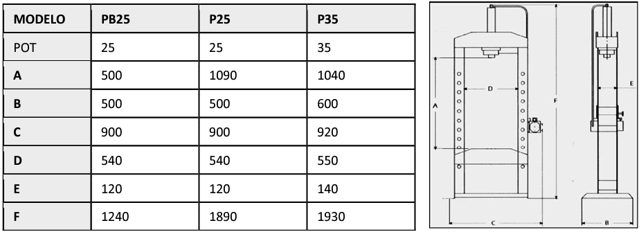 Equipada com bomba de 1 velocidade de descida e retorno automático do Pistão;